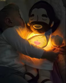 Plușul funcționează cu baterii AAA, dar acestea nu sunt incluse în pachet pentru a facilita expedierea în siguranță.